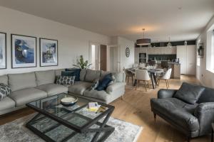 Tento apartmán se dvěma ložnicemi disponuje dvěma koupelnami vybavenými sprchovými kouty typu walk-in a vanou. Plně vybavená kuchyně zahrnuje myčku nádobí, troubu a kávovar. Hosté si mohou užít televizor s plochou obrazovkou se streamovacími službami v obývací části nebo relaxovat na rozkládací pohovce. Komfort po celý rok zajišťují ručníky, povlečení včetně hypoalergenních polštářů a vytápění.