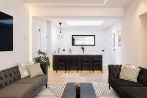 Просторные апартаменты включают пять спален и четыре ванные комнаты с душевыми кабинами без бортиков, среди которых имеются частные санузлы с гидромассажными ваннами. Для отдыха предусмотрены терраса или балкон, используемые как открытая столовая зона с видом на город. В гостиной оборудовано отопление и установлен телевизор с плоским экраном, дополнительно имеется оснащённая кухня с посудомоечной машиной, духовым шкафом, кофемашиной, электрическим чайником и полным набором кухонной посуды.